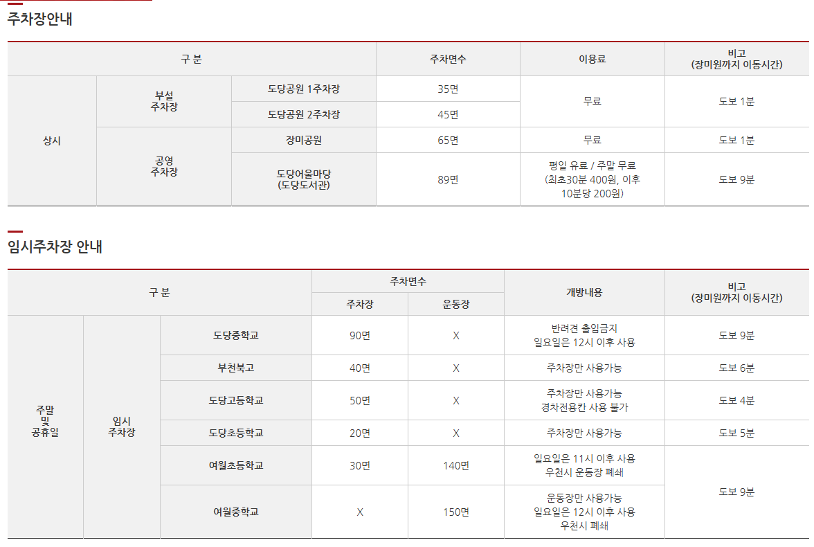 - 도당어울마당 주차장 – 89면 (주말 무료, 평일 유료)