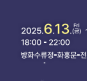 ✅일정: 2025년 6월 13일(금) ~ 15일(일) 시간: 매일 18:00 ~ 22:00